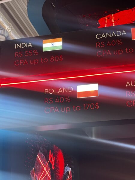 Zdjęcia z największych targów branżowych pokazują, że offshore nie tylko nie działa po cichu, wręcz przeciwnie, promuje się tak samo otwarcie jak licencjonowane firmy. Operatorzy spoza UE prezentują Polskę jako rynek o najwyższej opłacalności, oferując afiliantom finansowe warunki nieosiągalne dla legalnie działających firm.