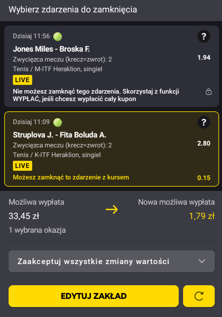 Nowa opcja działa zarówno w zakładach przedmeczowych, jak i live. Dzięki temu gracze mogą reagować na zmieniający się przebieg spotkań i dostosowywać swoje typy bez konieczności korzystania z klasycznego cash-outu.