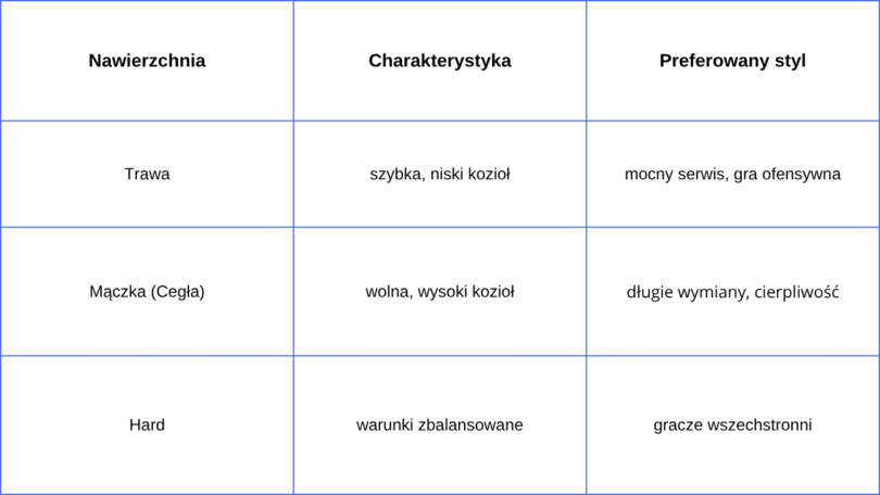 Nawierzchnia to jeden z najważniejszych czynników wynikowych w tenisie. Ma ona ogromny wpływ na styl gry i możliwy wynik: