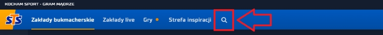 - Wejdź na stronę główną bukmachera STS (www.sts.pl) i znajdź ikonę lupy na głównym pasku nawigacyjnym (w górnej części strony)