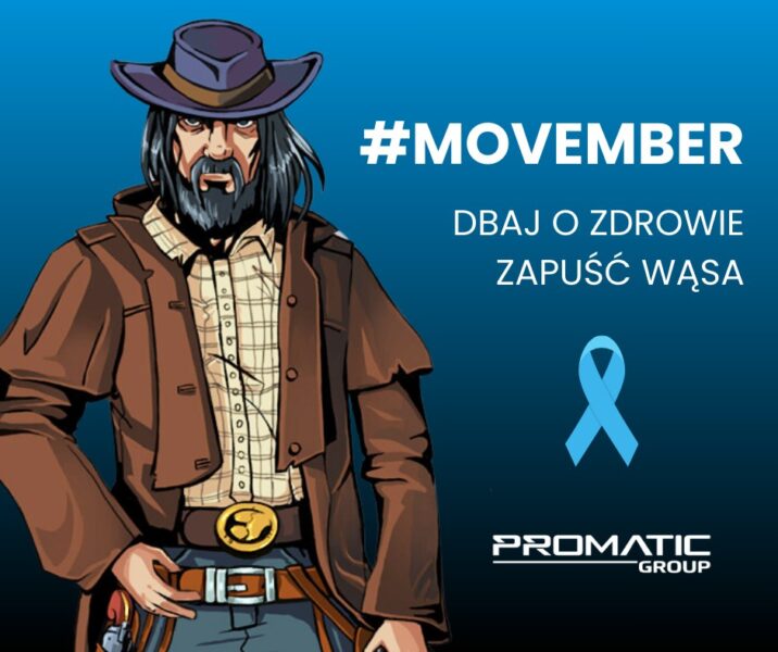 Promatic Group również włączył się w globalną inicjatywę Movember, zachęcając do zapuszczania wąsów jako symbolu wsparcia w walce z rakiem prostaty i jąder oraz na rzecz zdrowia psychicznego. Firma podkreśla znaczenie rozmowy o zdrowiu i profilaktyce, nawiązując do tradycji Movember, która angażuje miliony ludzi na całym świecie. Opublikowana grafika z charakterystycznym kowbojem z wąsem przypomina, że każdy gest – nawet symboliczne zapuszczenie wąsów – może przyczynić się do zwiększenia świadomości i zachęcić do regularnych badań.