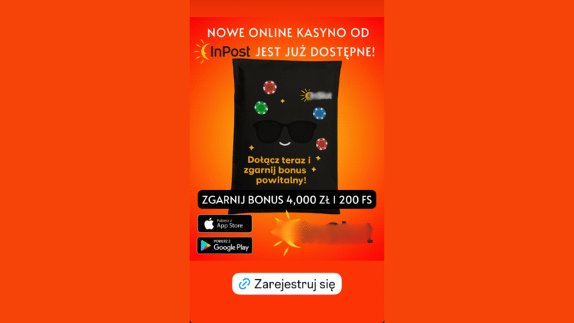 Nielegalne kasyna znajdują kolejne sposoby na promocję. Tym razem w sieci pojawiła się reklama sugerująca powiązania jednego z offshore’owych operatorów z firmą InPost. W rzeczywistości to nielegalne kasyno online, działające bez licencji w Polsce i niemające żadnego związku z operatorem logistycznym.