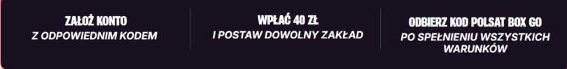 Aby skorzystać z promocji, użytkownik musi zarejestrować konto Superbet w okresie trwania oferty, używając kodu POLSATVIP, wpłacić co najmniej 40 zł oraz postawić pierwszy zakład. Po spełnieniu tych warunków, w ciągu maksymalnie czterech dni otrzyma voucher umożliwiający korzystanie z trzymiesięcznego dostępu do pakietu Premium Sport w usłudze Polsat Box GO. Oferta dotyczy nowych klientów i obowiązuje do wyczerpania puli voucherów.