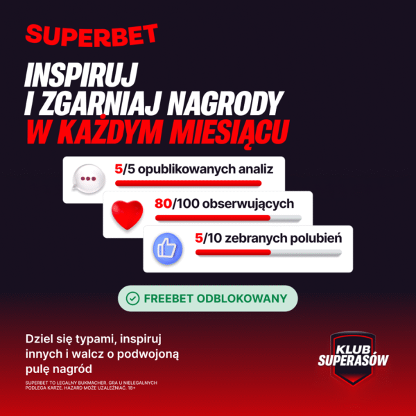 Superbet zwiększył pulę nagród w Klubie SuperASów z 500 tysięcy do miliona złotych miesięcznie. Jednocześnie firma podwoiła wysokość freebetów za takie samo zaangażowanie, co oznacza, że twórcy mogą liczyć na dwukrotnie wyższe nagrody niż wcześniej. Takie rozwiązanie ma zachęcić zarówno obecnych uczestników, jak i nowych graczy do aktywności w ramach programu.